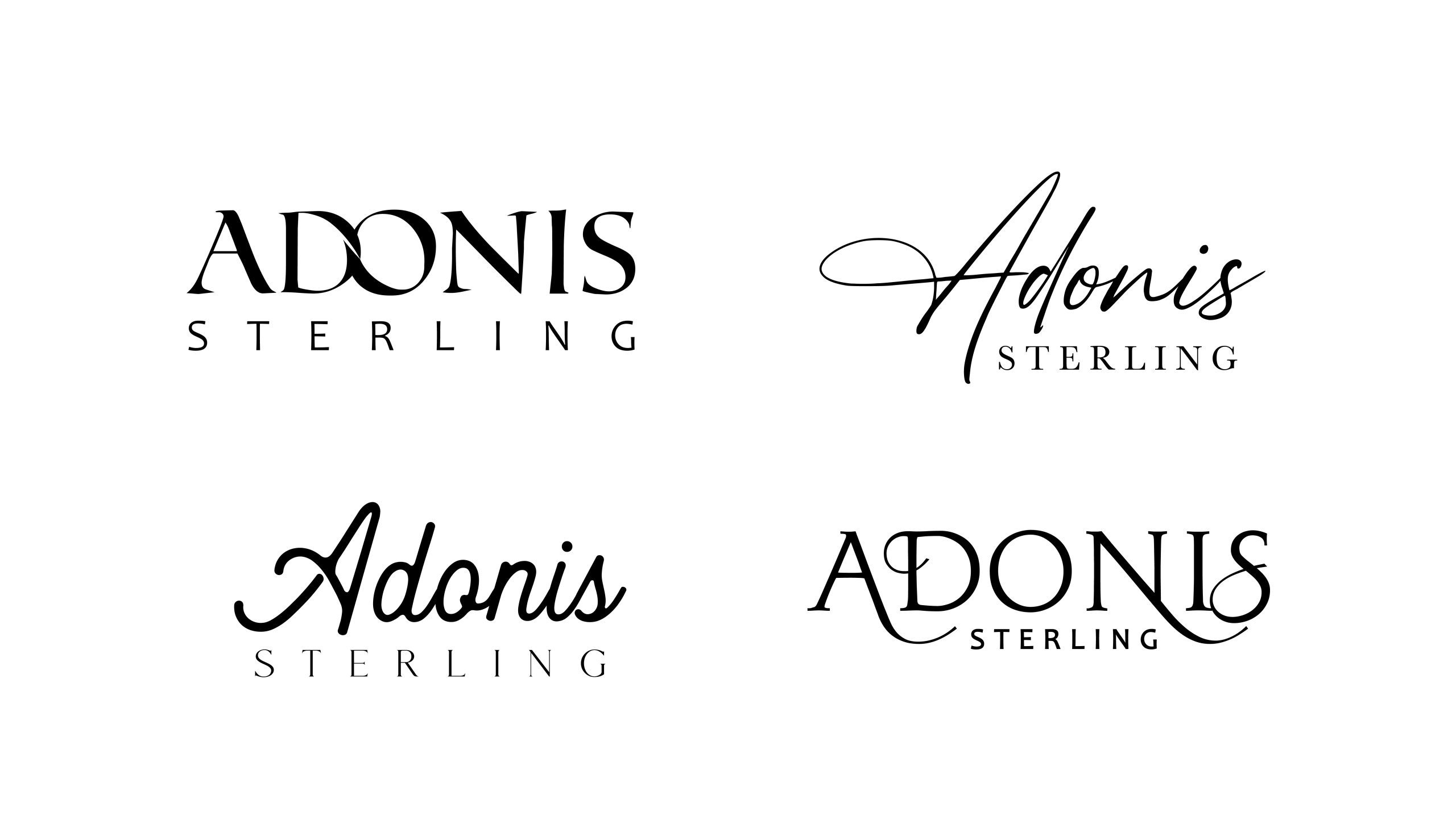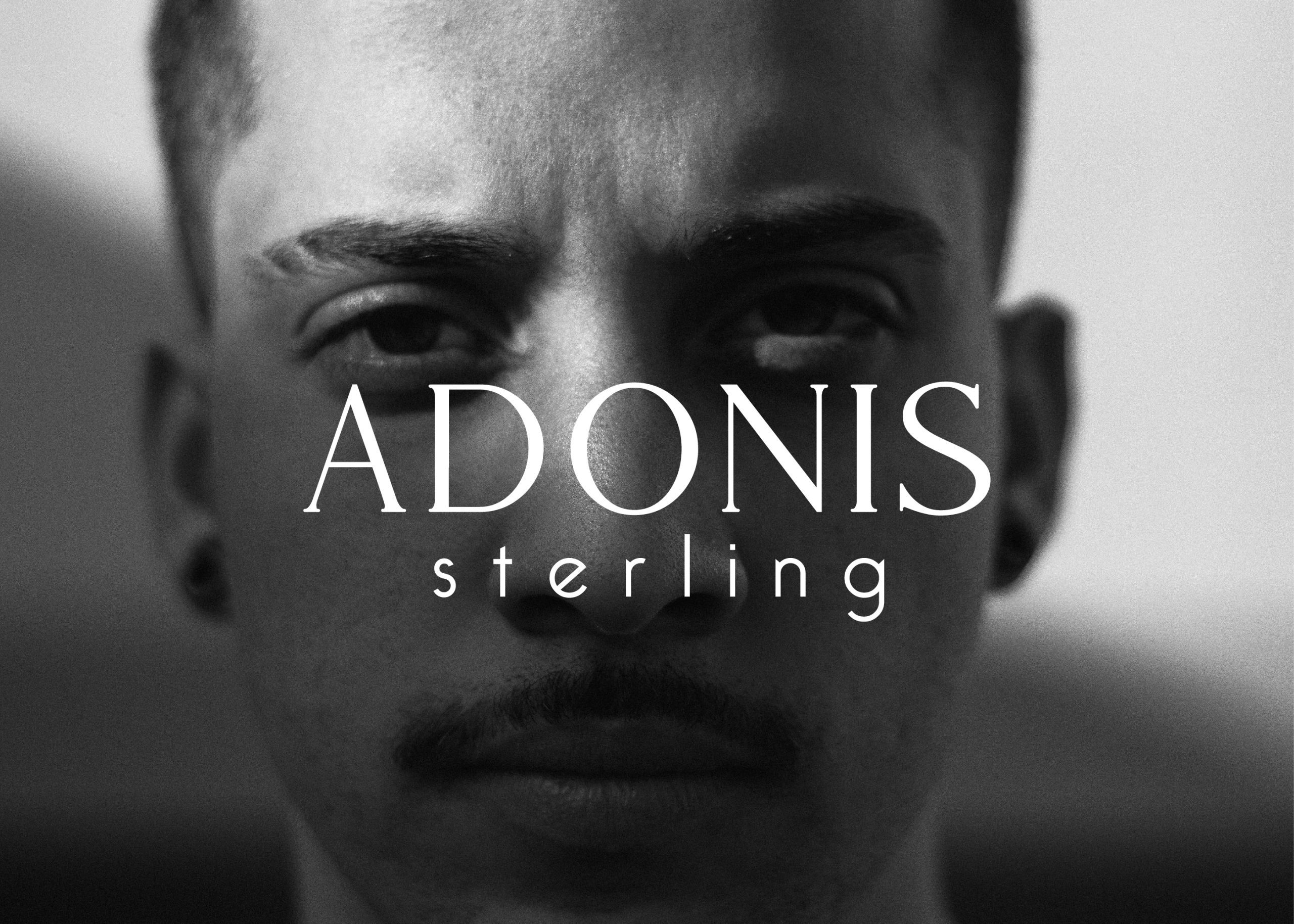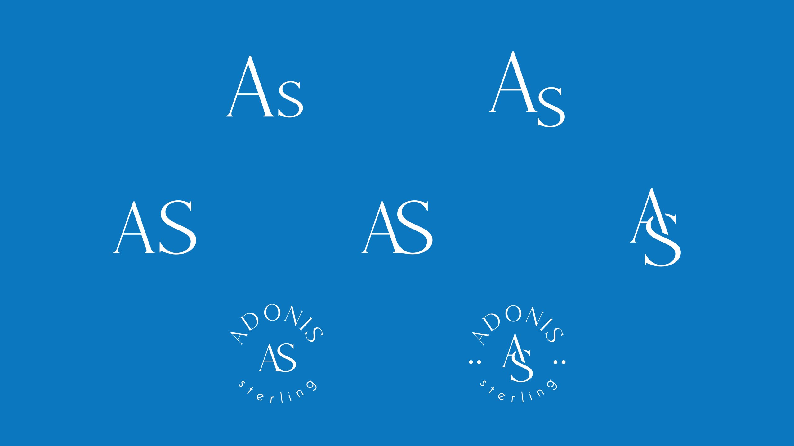 The serif typeface for “ADONIS” adds heritage and classic strength, while the geometric sans-serif for “sterling” introduces softness and modernity—symbolizing the balance between power and subtlety in the brand’s personality.